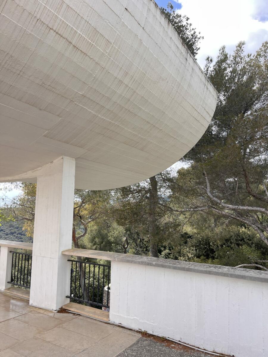 Ces toits, à la fois fonctionnels et sculpturaux, évoquent la voile ou la coquille, références directes à la culture méditerranéenne et à la modernité organique. Leur rythme ondulant structure l’ensemble du bâtiment et relie ses différentes parties dans un mouvement continu.
