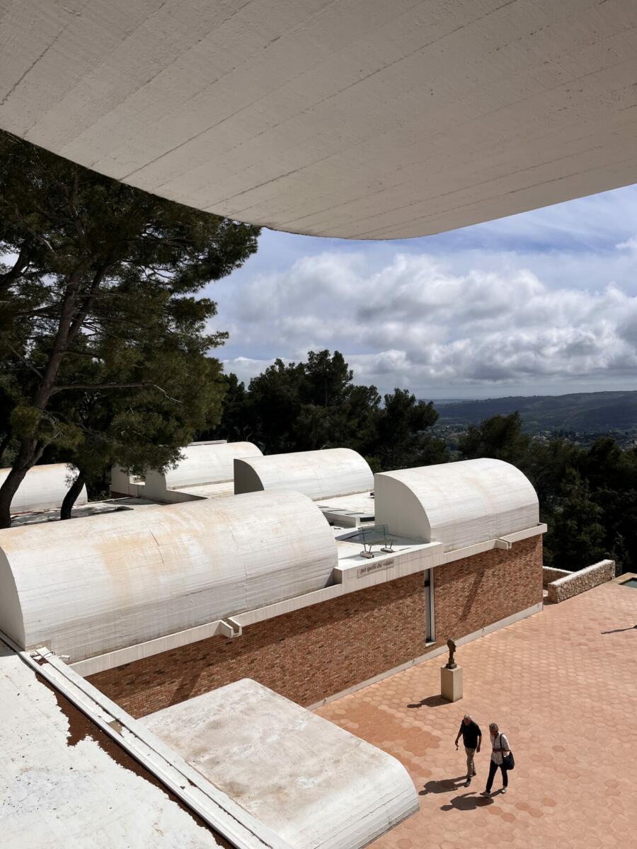 Le musée abrite une remarquable collection d’art moderne et contemporain( Giacometti, Calder, Chagall…) constituée par Marguerite et Aimé Maeght mais c’est son architecture elle-même qui mérite mon admiration aujourd’hui.