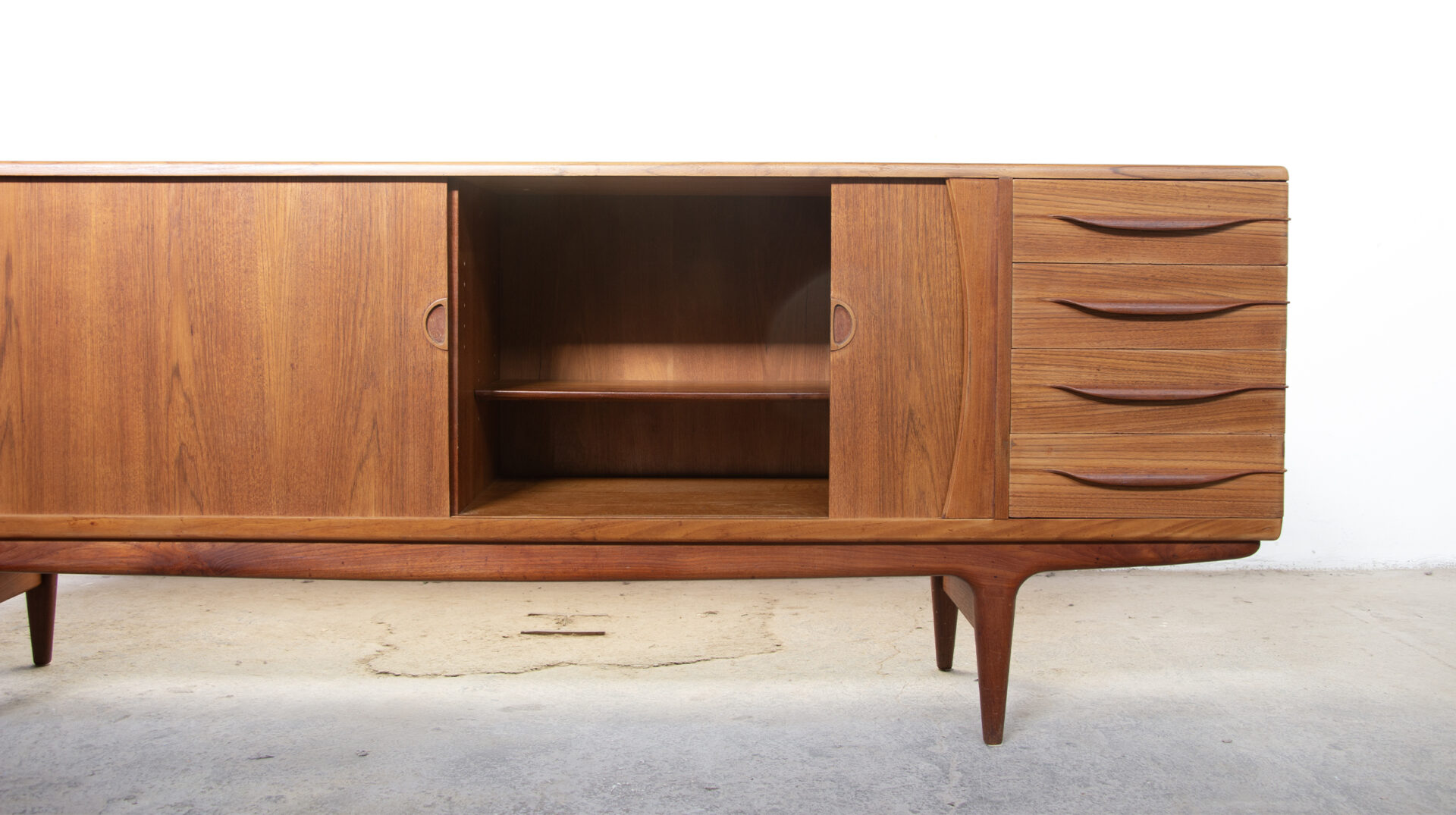 Sideboard vintage en teck du Danois Johannes Andersen pour Uldum Mobelfabrik. Années 60. Modèle U15. Estampillé du tampon U 15 au dos.
