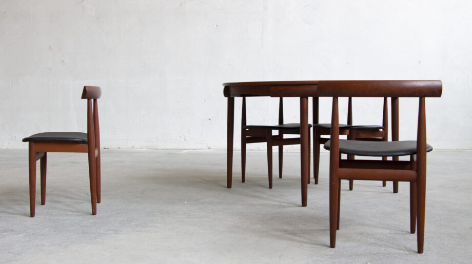 Ensemble Table Danoise des années 60 avec ses 4 chaises par Hans Olsen pour l’éditeur Danois Frem Rojle en teck.