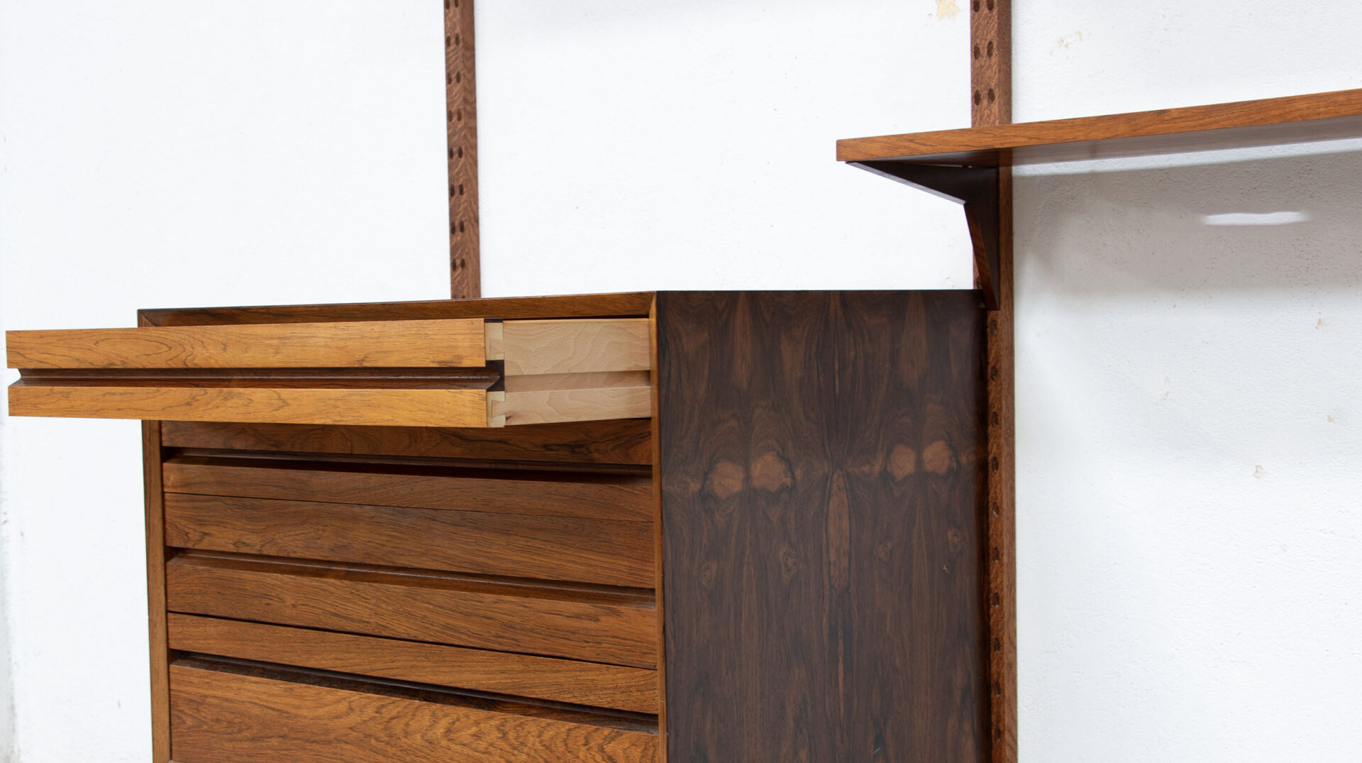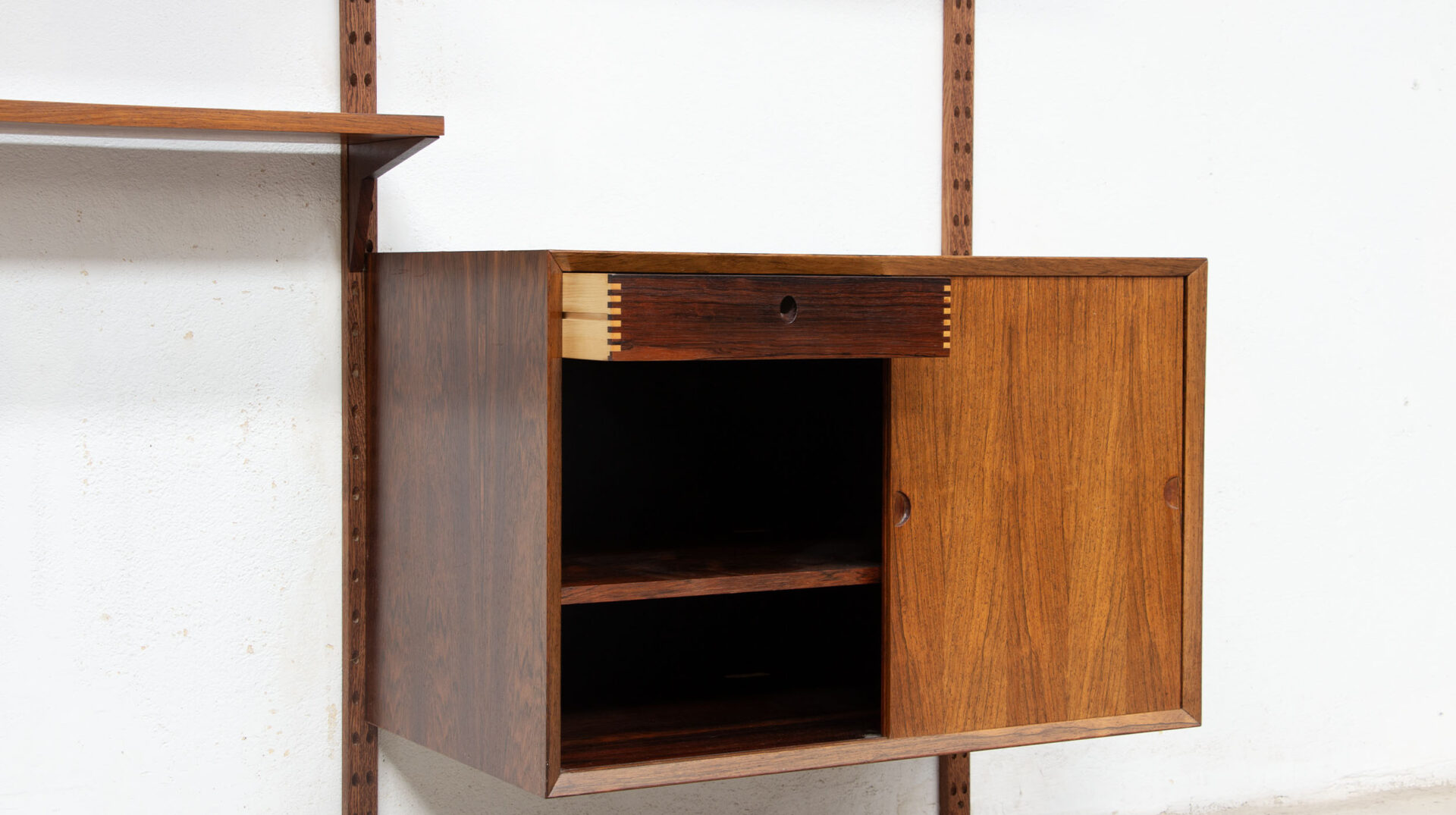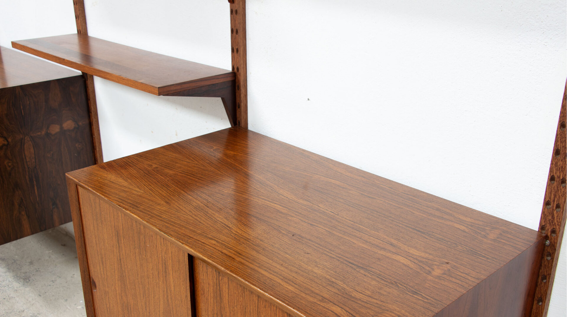 Les étagères et les caissons sont à insérer ensuite dans ceux-ci avec le systeme de fixation Cado sans outils.