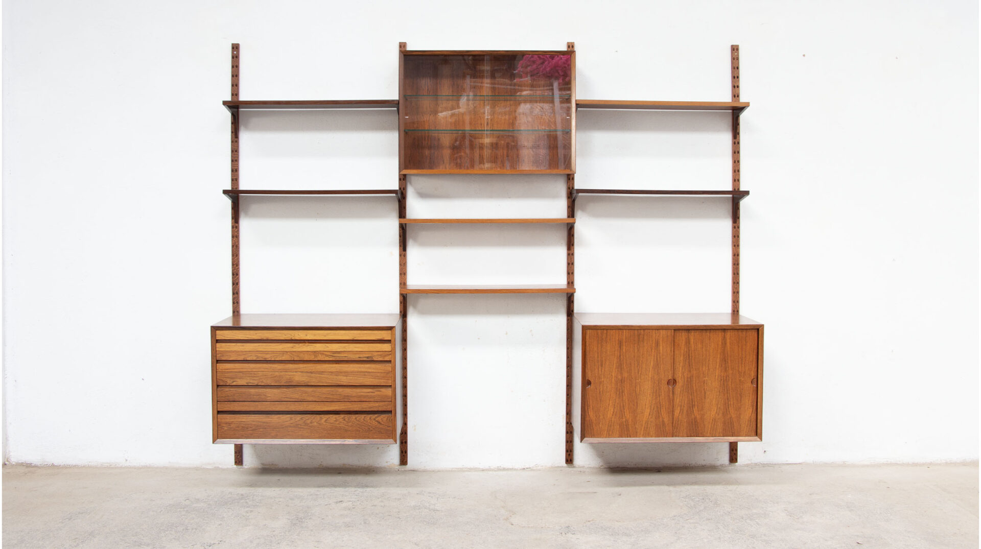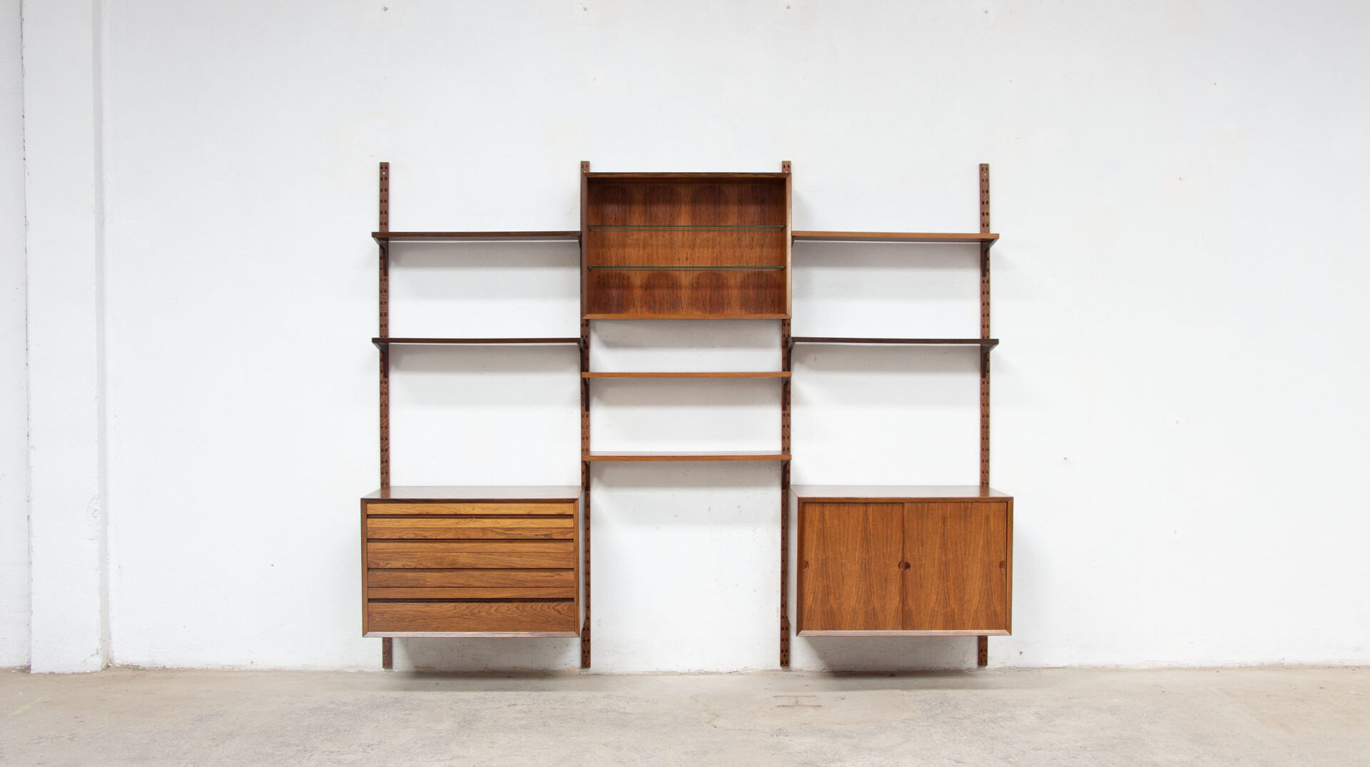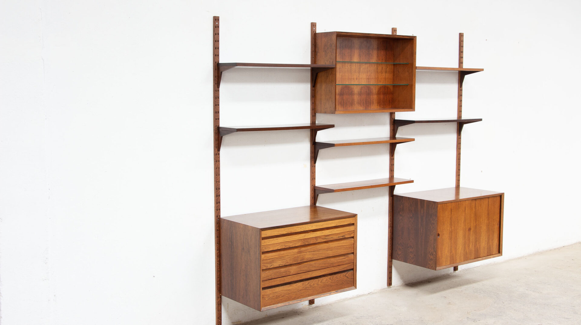 Les étagères et les caissons sont à insérer ensuite dans ceux-ci avec le systeme de fixation Cado sans outils.