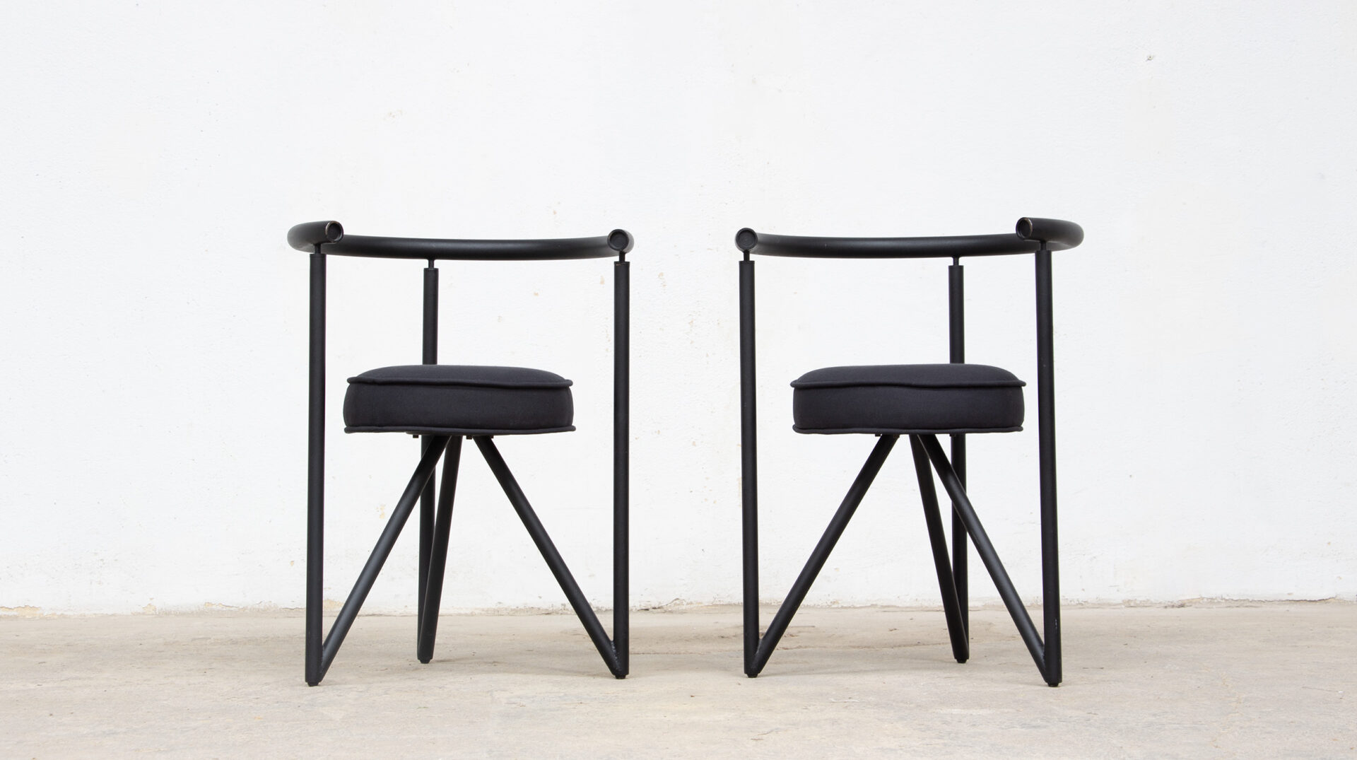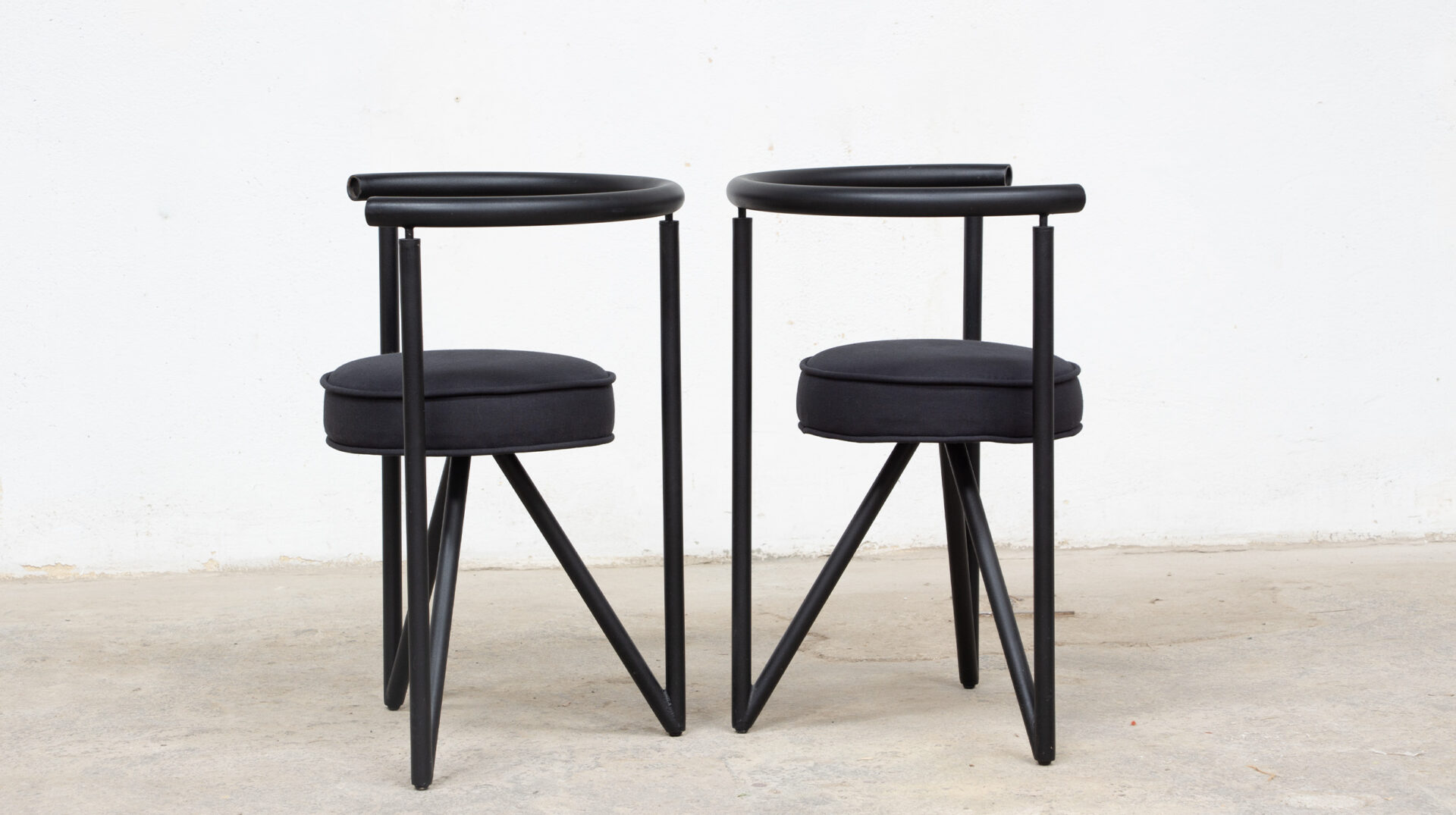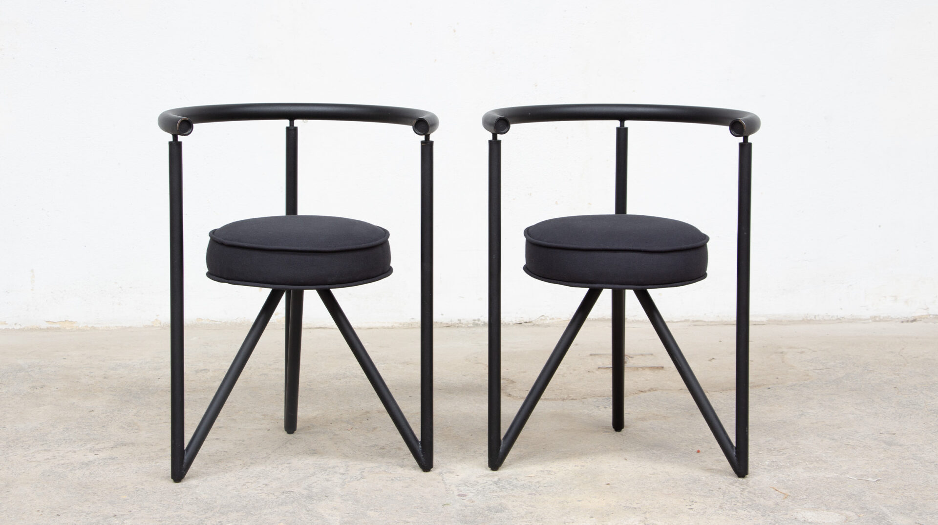 Paires de chaises tripode modèle « Miss Dorn » dessinées par Philippe Starck en 1982. Elles ont été fabriquées par l’éditeur Espagnol Disform en 1983.