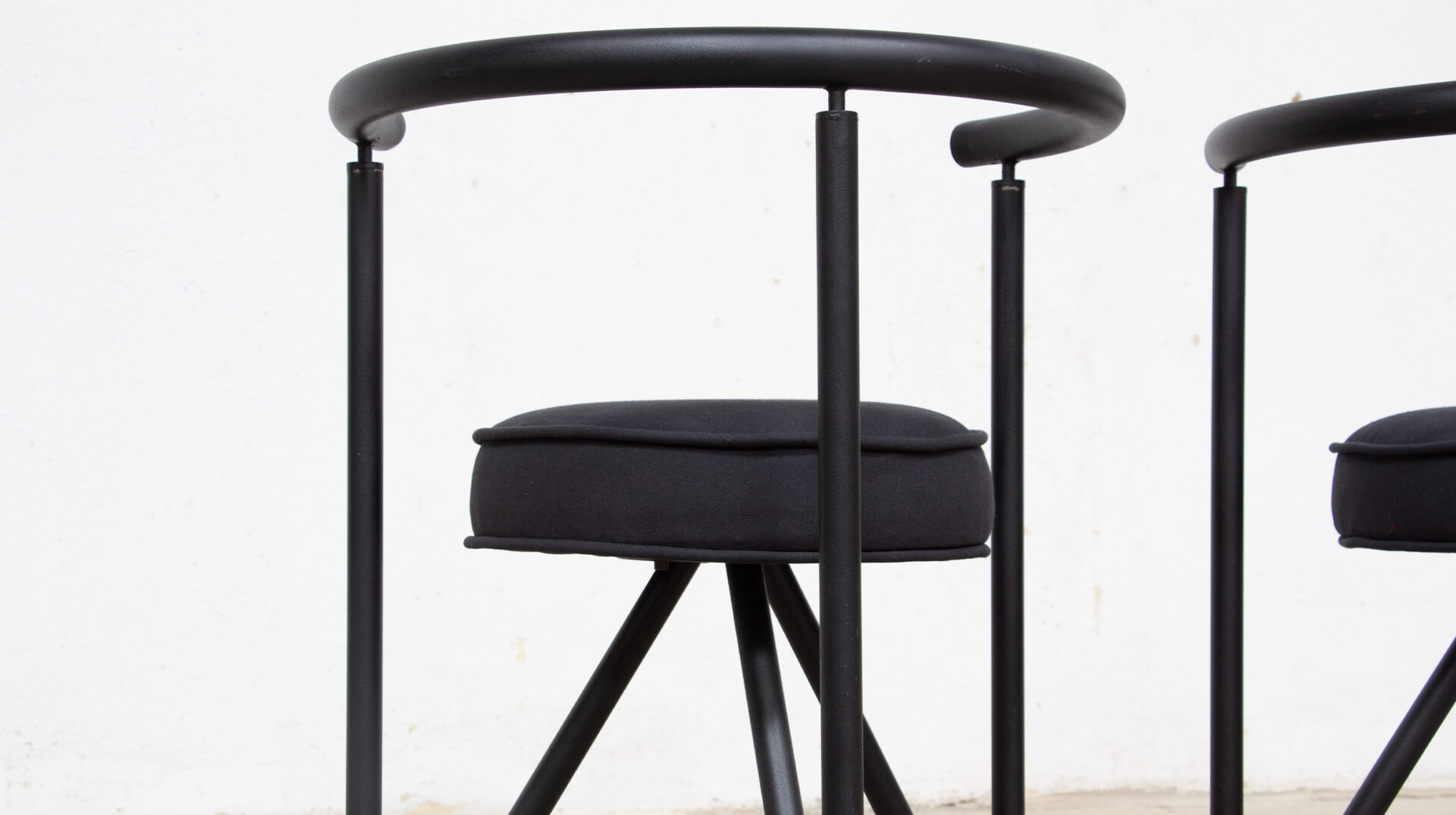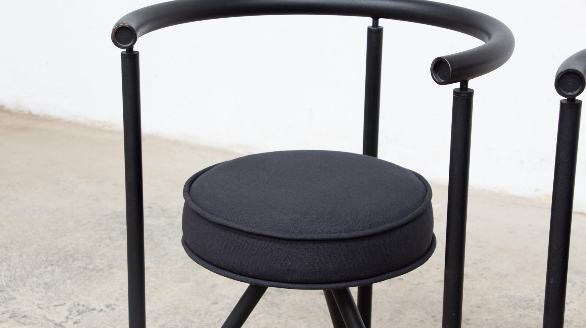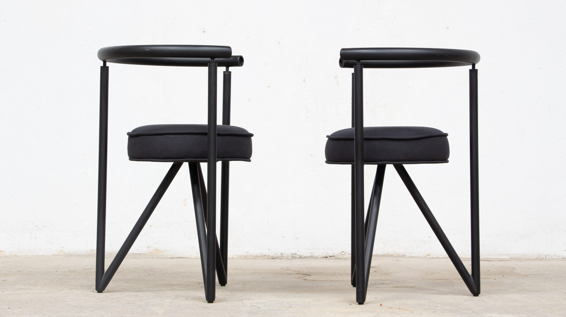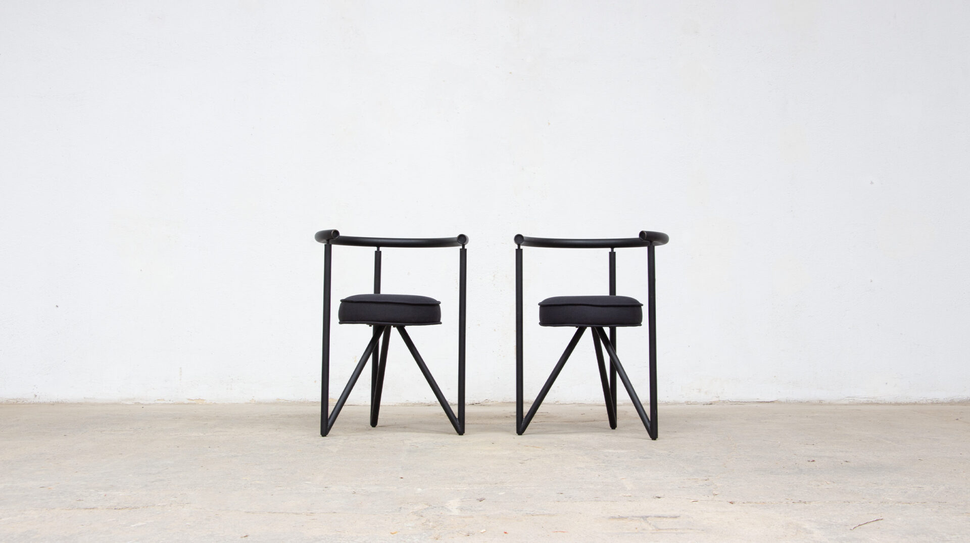 Paires de chaises tripode modèle « Miss Dorn » dessinées par Philippe Starck en 1982. Elles ont été fabriquées par l’éditeur Espagnol Disform en 1983.