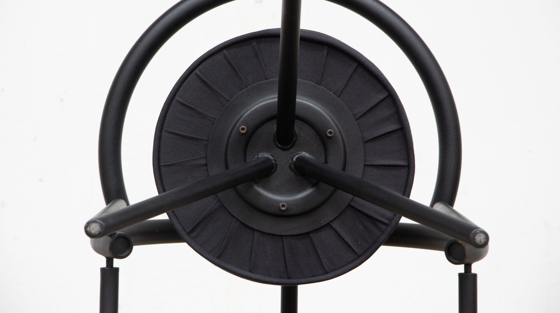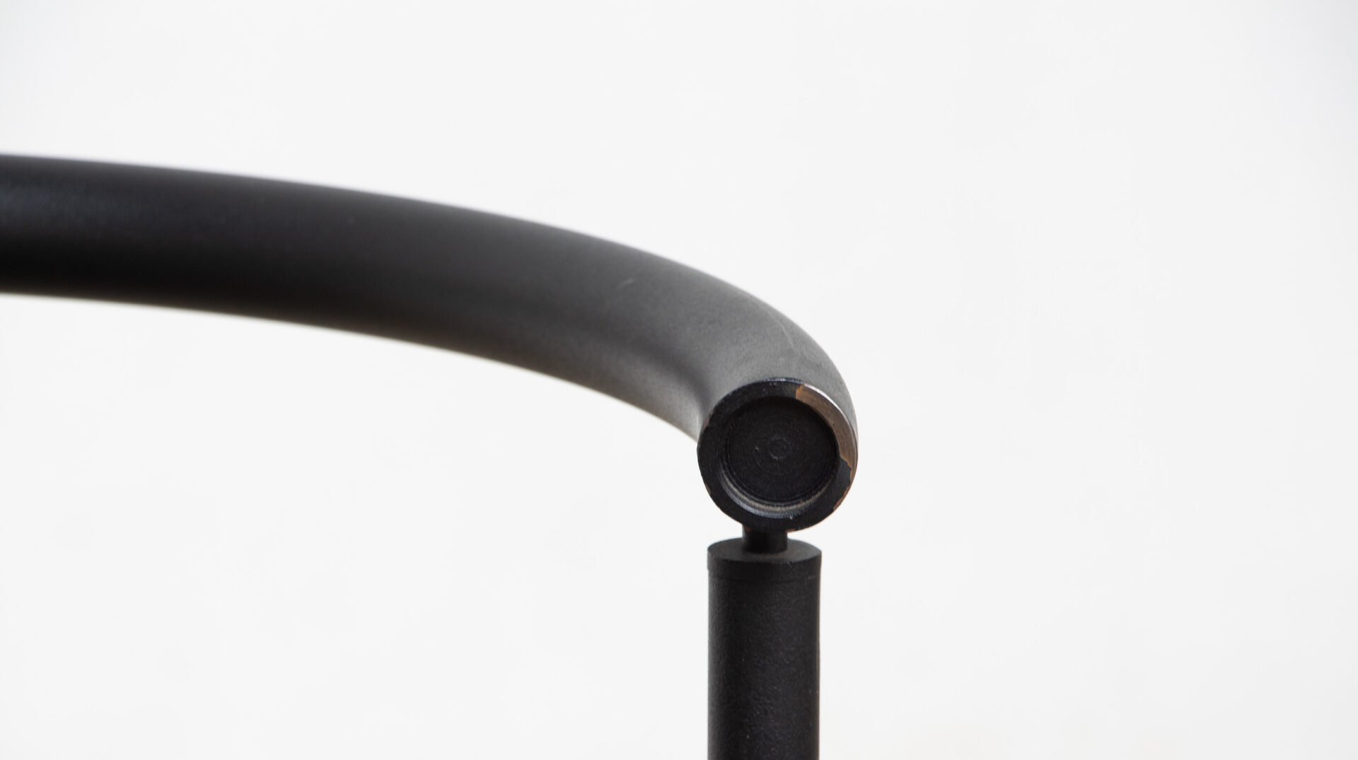 Design post-modern, la chaise est une véritable sculpture. Philippe Starck met ici en opposition les lignes droites avec le piétement et le dossier en tube cintrée avec son assise généreuse circulaire.