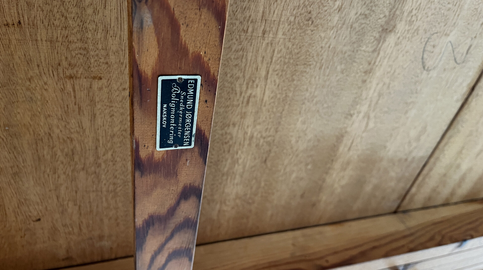 L’unique propriétaire avait acquis cette table avec un ensemble salle à manger et salon complet chez le maître ébeniste Edmund Jørgensen de la ville de Nakskov au Danemark.